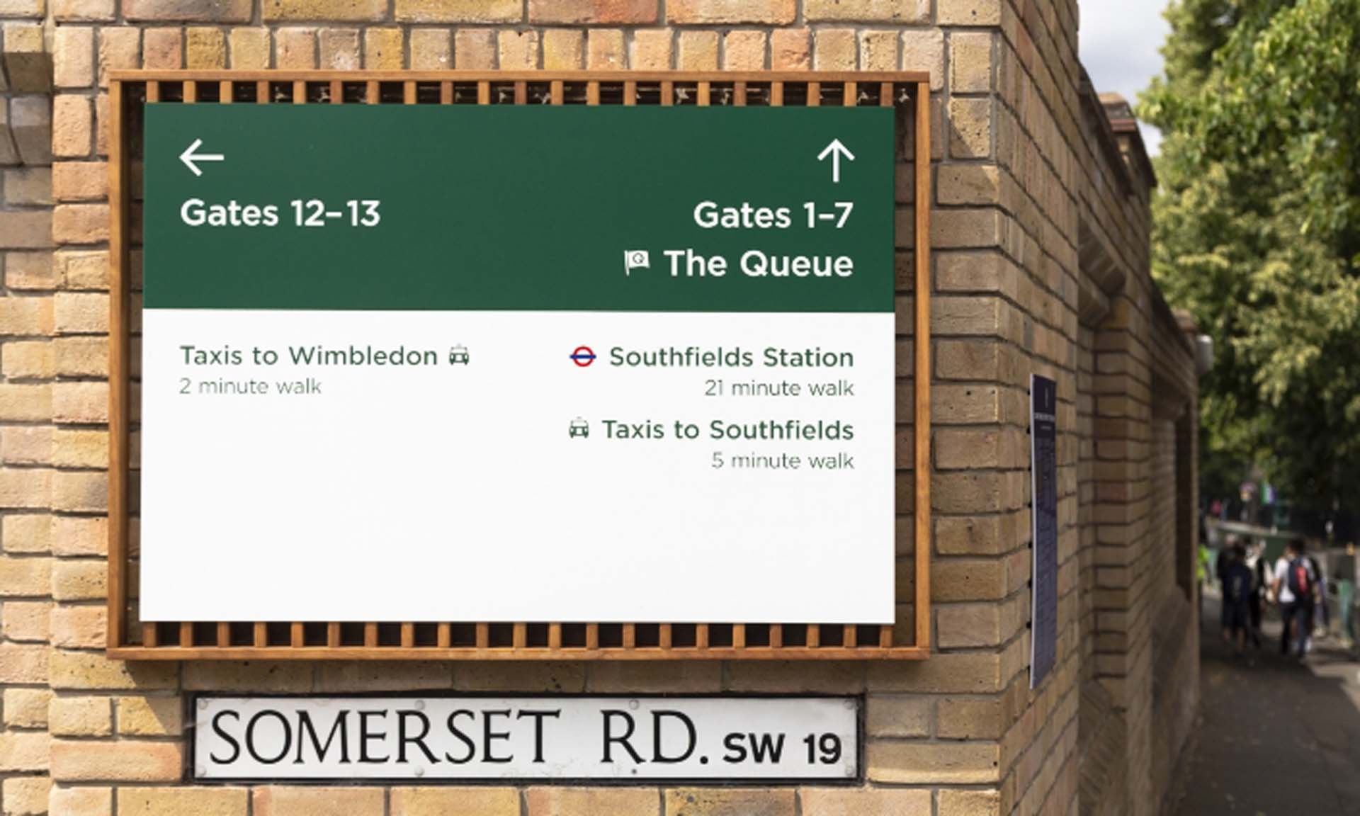 As a global sporting attraction with iconic status, The All England Lawn Tennis Club strives for continual improvement, with the simple vision of delivering a ‘best-in-class’ guest experience for every single Championships. This includes the strengthening of its existing wayfinding system; one that forms an essential and highly prominent touch point for all guests who enter the 300,000+ sqm event site.